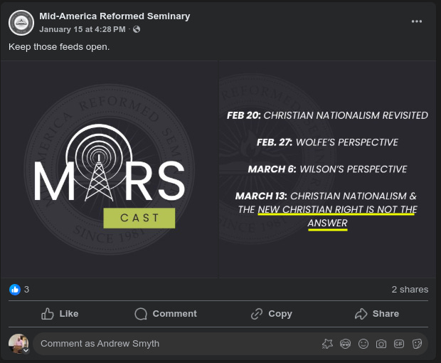 “It’s not a luxury ideology, it’s biblical and true!” Open any Reformed works of exegesis and theology from before 1900 and read them (thoroughly and in context on relevant topics). You won’t find modern 2K and it’s insistence on separation there.