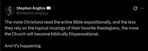 As I sought help to resolve this, dispensationalist sources didn’t help. They generally just doubled down, strawmanned, and lobbed baseless accusations against other views. Kind of like what this Angliss character has taken to doing lately.