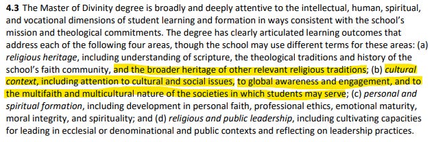 MDivs are to require engagement with other religious traditions, and preparation for “the multifaith and multicultural nature of the societies in which students may serve...”