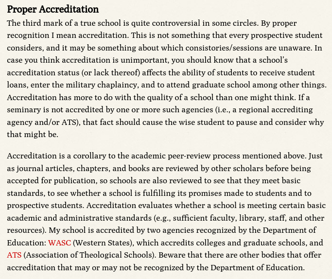 I did a deep dive about a year ago into the problems with ATS accreditation particularly: how it invites doctrinal compromise, how it prioritizes the interests of academia over the church, and how it furthers a DEI agenda.