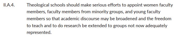 Also, in their Policy Guidelines, ATS expects member schools to appoint women as faculty, as well as minorities and young faculty. ats.edu/files/gallerie…