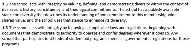 The ATS Standards of Accreditation impose many diversity-related requirements on schools as a demand of “integrity.”ats.edu/files/gallerie…